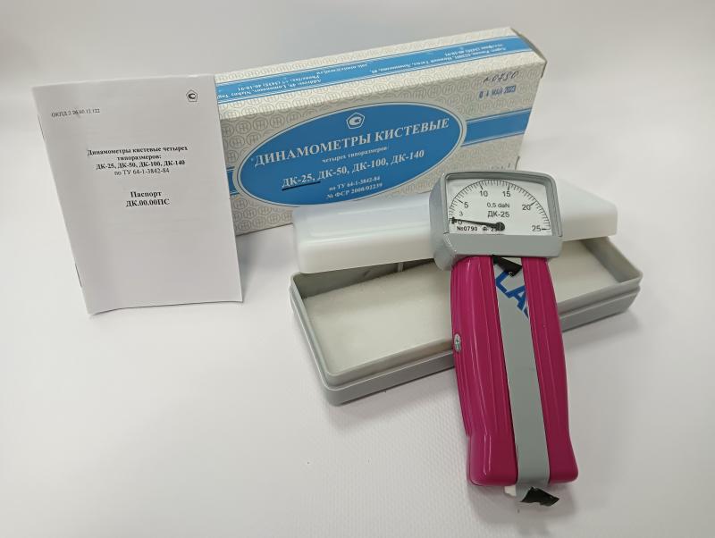 Предназначен для измерения мышечной силы кисти у различных по возрасту и физическому состоянию групп людей. Может применяться в клиниках, поликлиниках, больницах, диспансерах, санаториях и спортивных учреждениях. С целью наилучшего использования прибора лицами различного возраста и различной физической силы динамометр выпускается четырех типов: ДК-25, ДК-50, ДК-1ДК-140.Характеристики