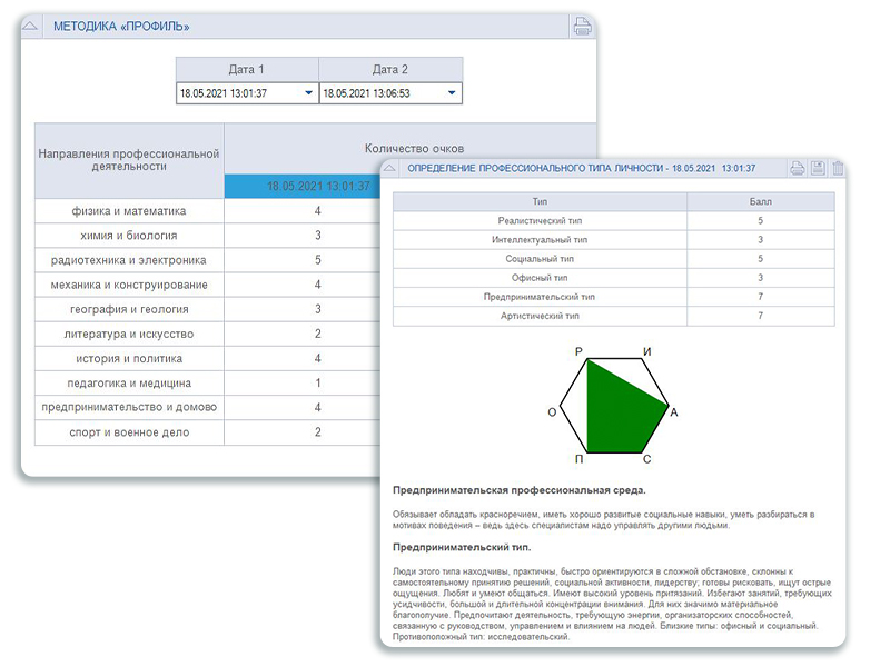 Профориентационная система включает в себя программу компьютерной обработки блока психологических тестов: