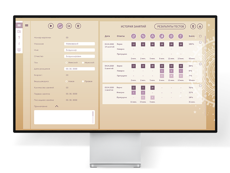 Тренажер представляет собой графический планшет с ручкой и специальное программное обеспечение. Методически программа выстроена так, что позволяет специалисту грамотно организовать процесс коррекционной работы и быстро достичь нужных результатов. Неотъемлемой частью тренажерного комплекса являются методические рекомендации, которые позволяет специалисту наметить пути коррекционный работы в зависимости от возраста клиента и структуры нарушения.