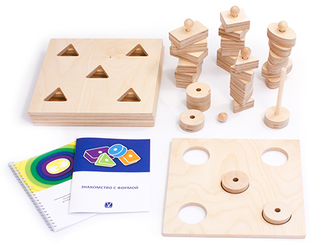 Набор создан на основе классического пособия «Рамки и вкладки», но с внесением существенных конструктивных изменений эргономических показателей, что обеспечивает удобство выполнения предлагаемых заданий (захват, удержание, нанизывание и пр.). Набор включает дополнительные дидактические материалы, обеспечивающие закрепление представлений о форме в предметной и игровой деятельности ребенка.Методическое руководство включает описание 8 дидактических игр. Игры можно проводить как индивидуально, так и с малой группой (2-4 ребенка). Входящее в комплект оборудование позволяет проигрывать до 5 вариантов каждой из 8 игр.